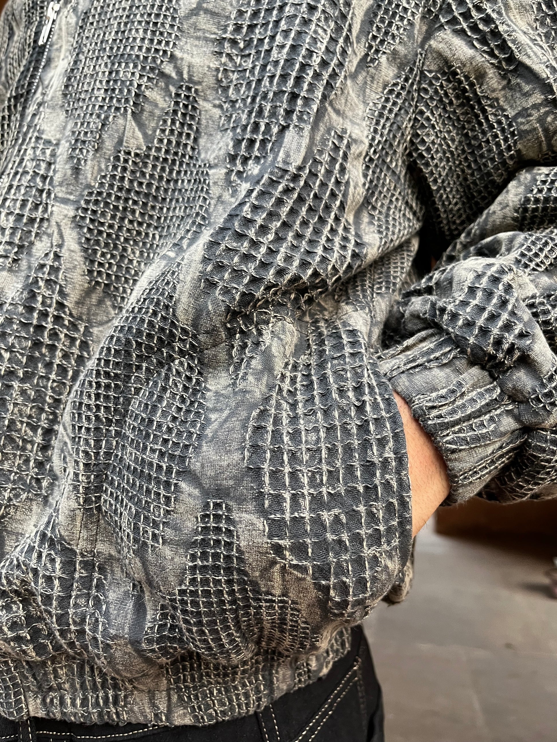 Crafted in 3D textured jacquard fabric which is acid washed, enhancing the grunge look!