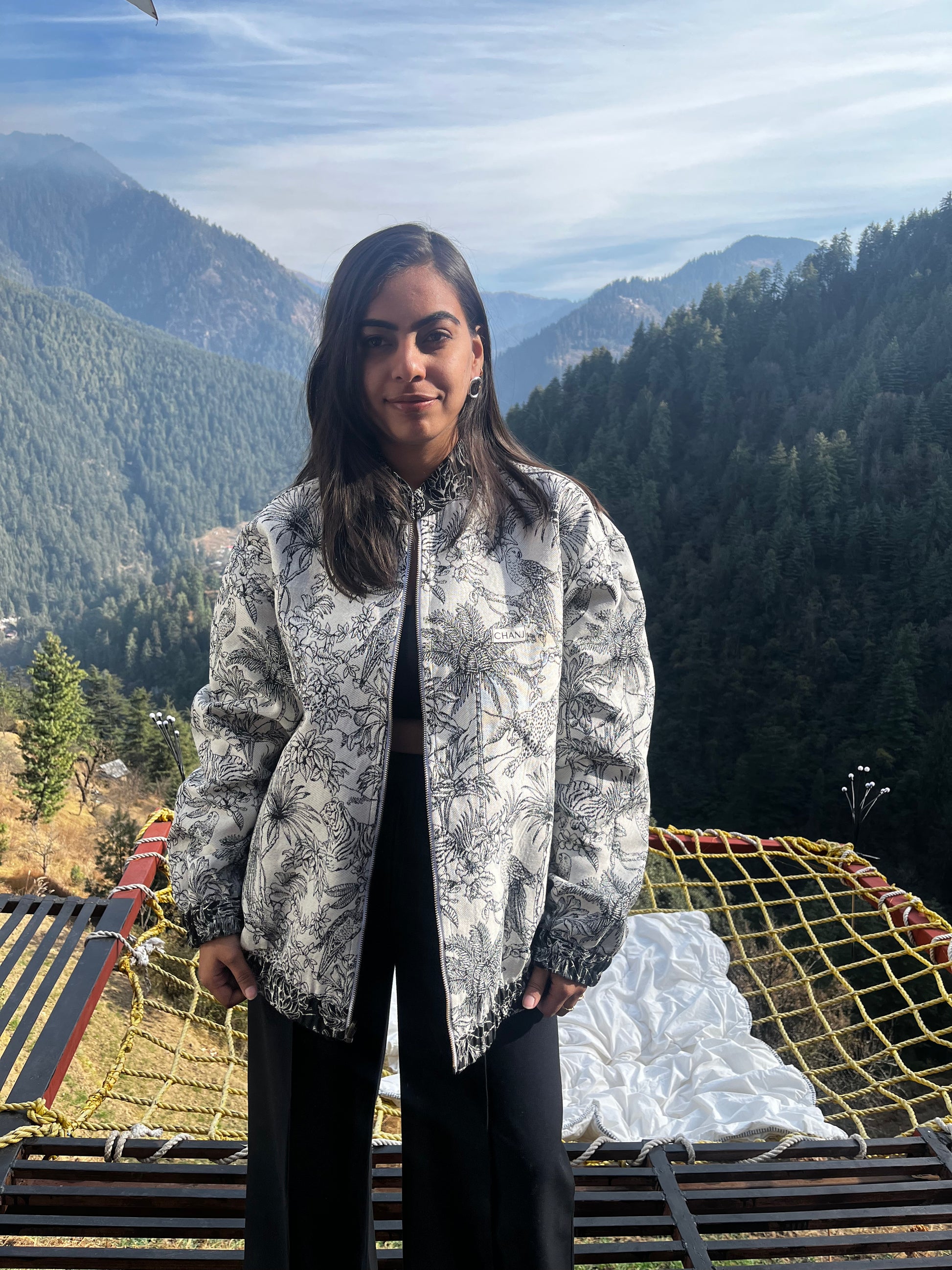 Introducing our Jungle Jacket – the ultimate blend of style and versatility. Crafted from luxurious jacquard weave fabric, this reversible jacket features a stunning flora and fauna pattern intricately woven into the fabric.
