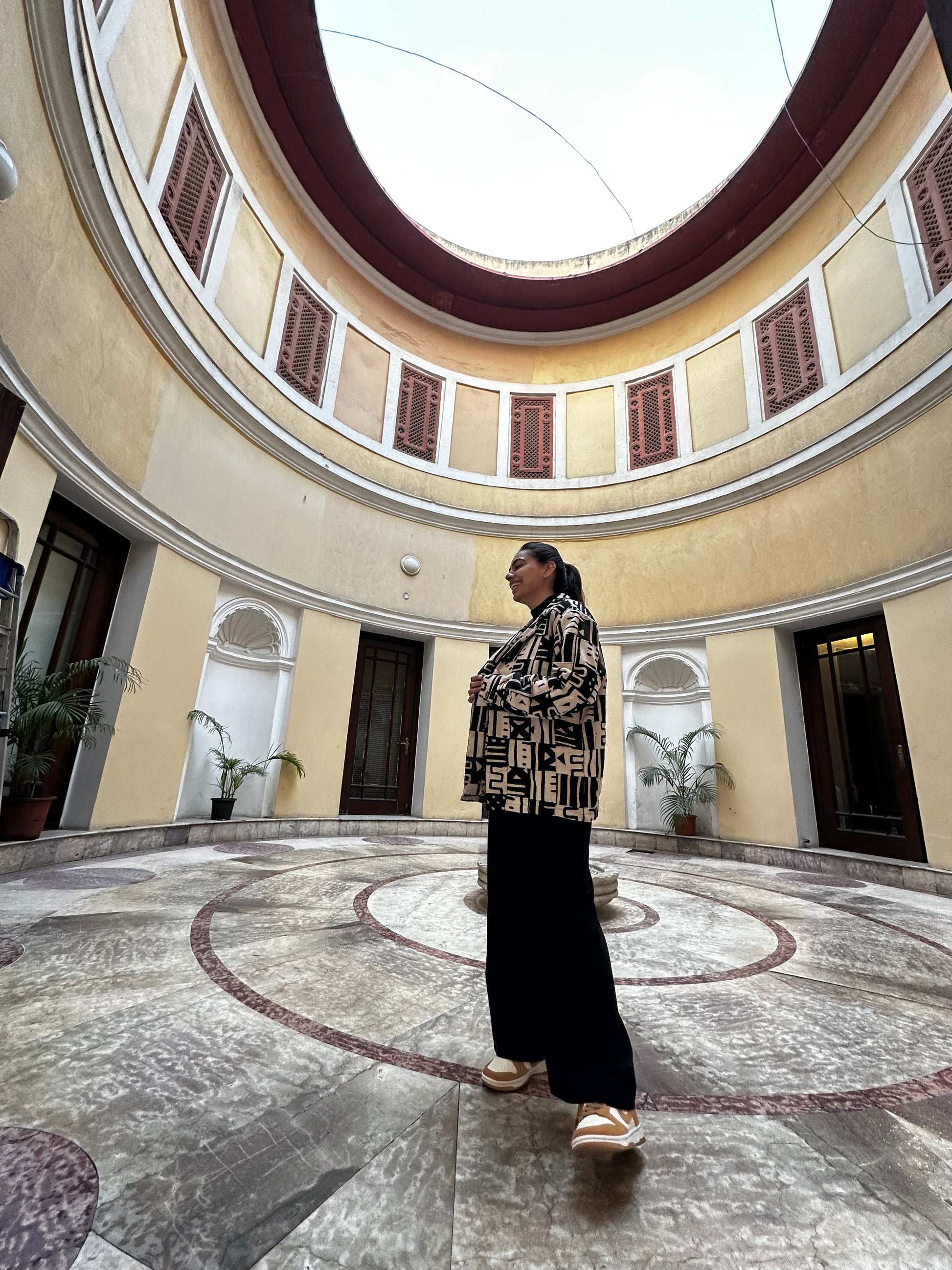 The leftover fabric is patched together to create an interesting new fabric and then the shirt is meticulously made with it! The wooden buttons adding to the aesthetic making it more sustainable!