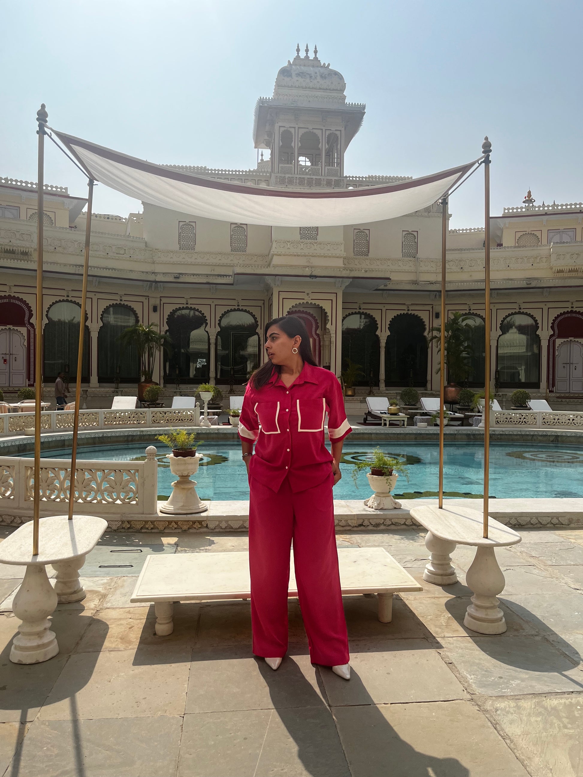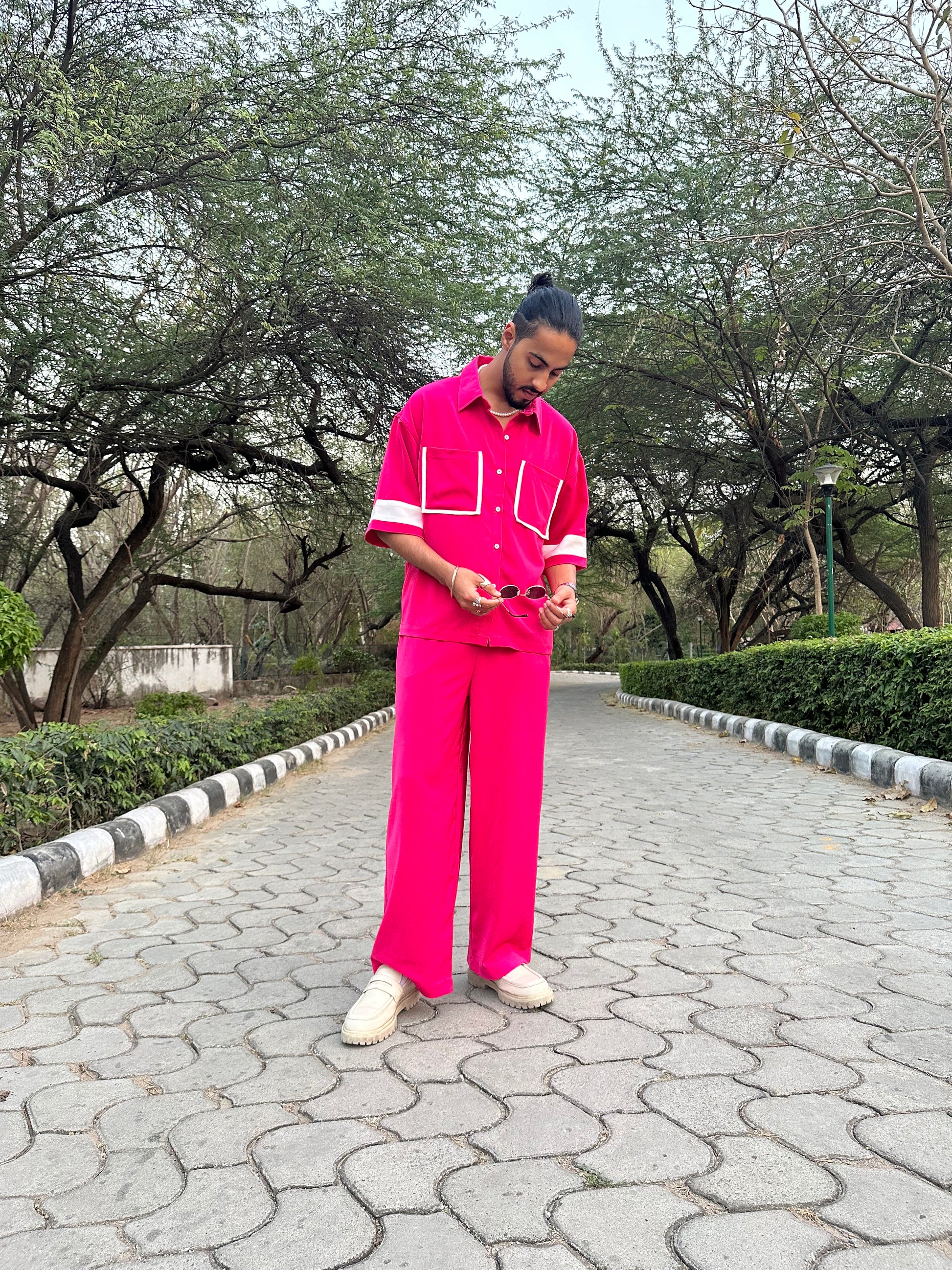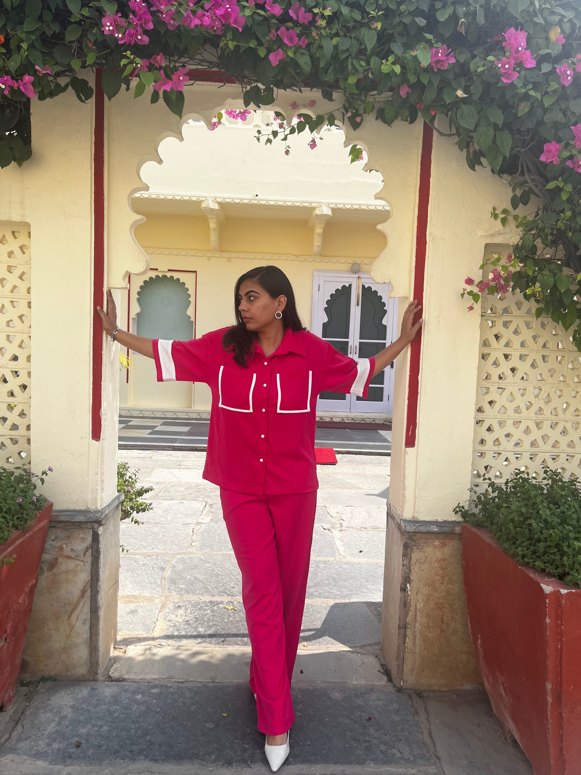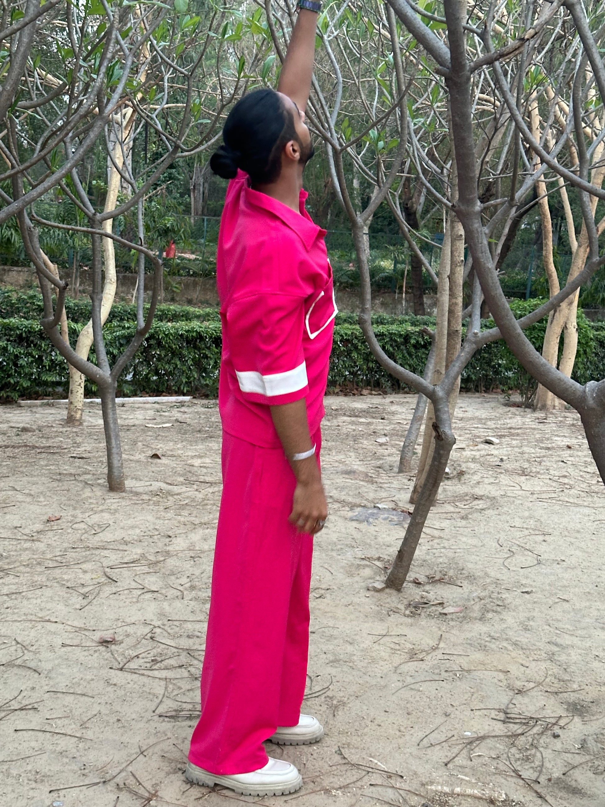 White panel details along the shirt's pocket and the sleeves stand great against the rani pink color. The baggy sleeves add style to the not so ordinary shirt!